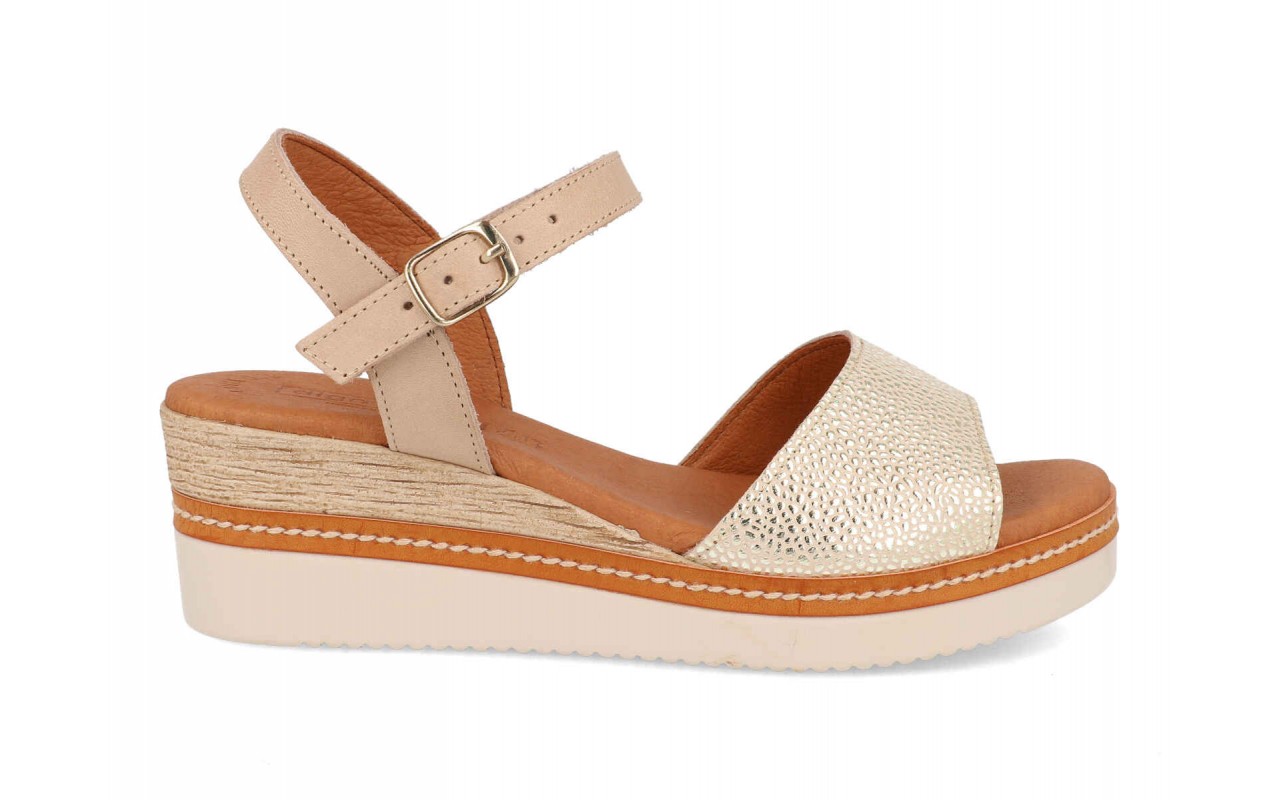 Sandalia con Cuña Media en Piel – Fabricada en España