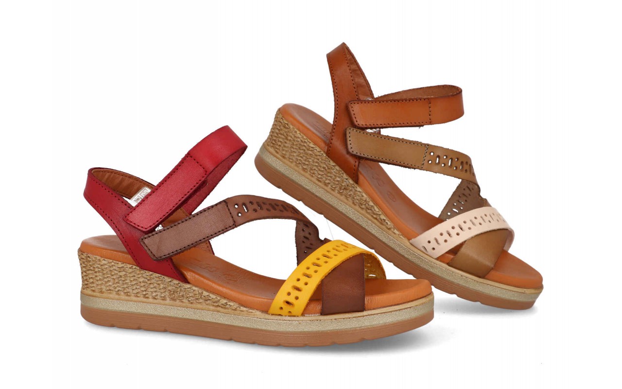 Sandalia con Cuña Media en Piel – Fabricada en España